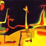 - Realizó su propia exploración inspirado en el surrealismo, Miró inventó un nuevo tipo de espacio pictórico en el que los objetos salidos estrictamente de la imaginación del artista se yuxtaponen con formas básicas reconocibles, – una hoz, un perro simplificado, una escalera…. Existe la sensación de que estos elementos mezclados siempre han coexistido tanto en el reino material, en el mundo real y en la profundidad del espacio pictórico del arte de Miró.