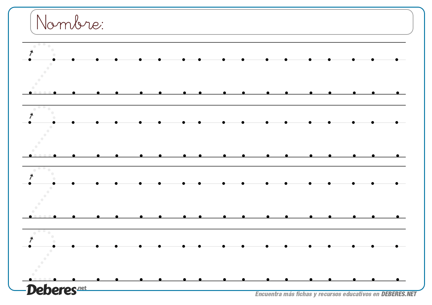 Ficha del numero 2 con guias y puntitos para empezar a escribir
