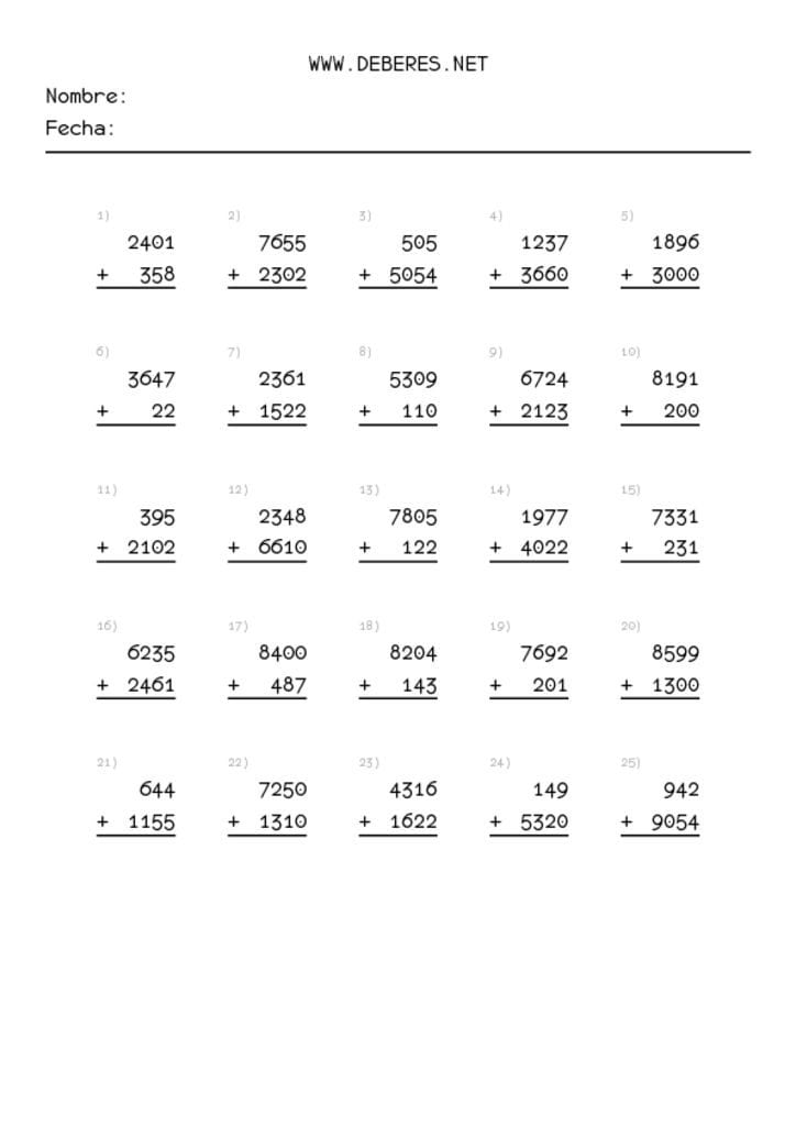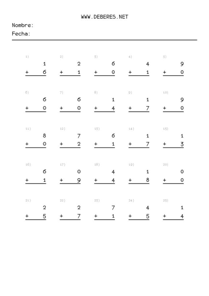 Fichas desde las sumas más básicas de una cifra, hasta seis cifras.