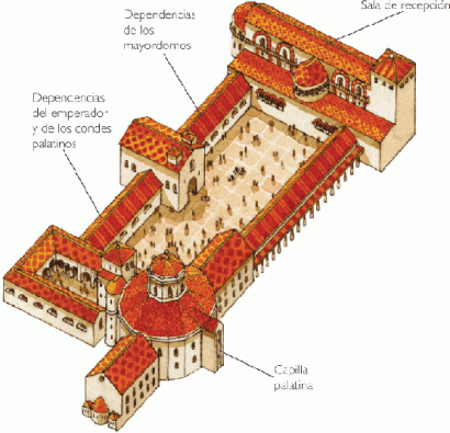 A pesar de la naturaleza itinerante de su corte, en consonancia con el espíritu nómada de los pueblos germánicos de quienes era heredero, Carlomagno no tardó en sentir la necesidad de edificar en su imperio una capital que viniera a continuar, e incluso a relevar, el prototipo de la antigua Roma o de la lejana Constantinopla. Para ello escogió la villa de Aquisgrán, donde estableció su corte y encargó al arquitecto Eudes de Metz la construcción de su conjunto palacial.