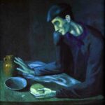 La fealdad, la vejez y la pobreza fueron temas recurrentes en sus obras, predominando los lienzos azules, que fue también el nombre que recibió este primer período de creación.