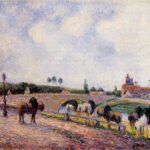 La obra de Pissarro se caracteriza por una paleta de colores cálidos y la firmeza con la que logra captar la atmósfera, a través de un preciso trabajo de luz.