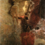 Con varias formas humanas desnudas e imágenes simbólicas bastante inquietantes y oscuras, la obra causó un escándalo entre el profesorado universitario.