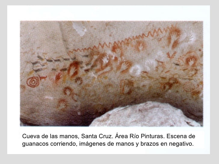 En las escasas pinturas que quedan de esa época, con los colores preferidos negro y rojo, dejaron en las paredes las impresiones de sus manos. También marcaban con anchas líneas de puntos las siluetas de animales.