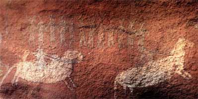 En ella aparecen mezcladas figuras de seres humanos y de animales. Los colores preferidos por estos artistas primitivos son el ocre-rojo y el negro sombreado.