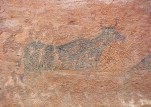 Copia de las pinturas halladas en el llamado Abrigo de los Toros en Teruel, España.