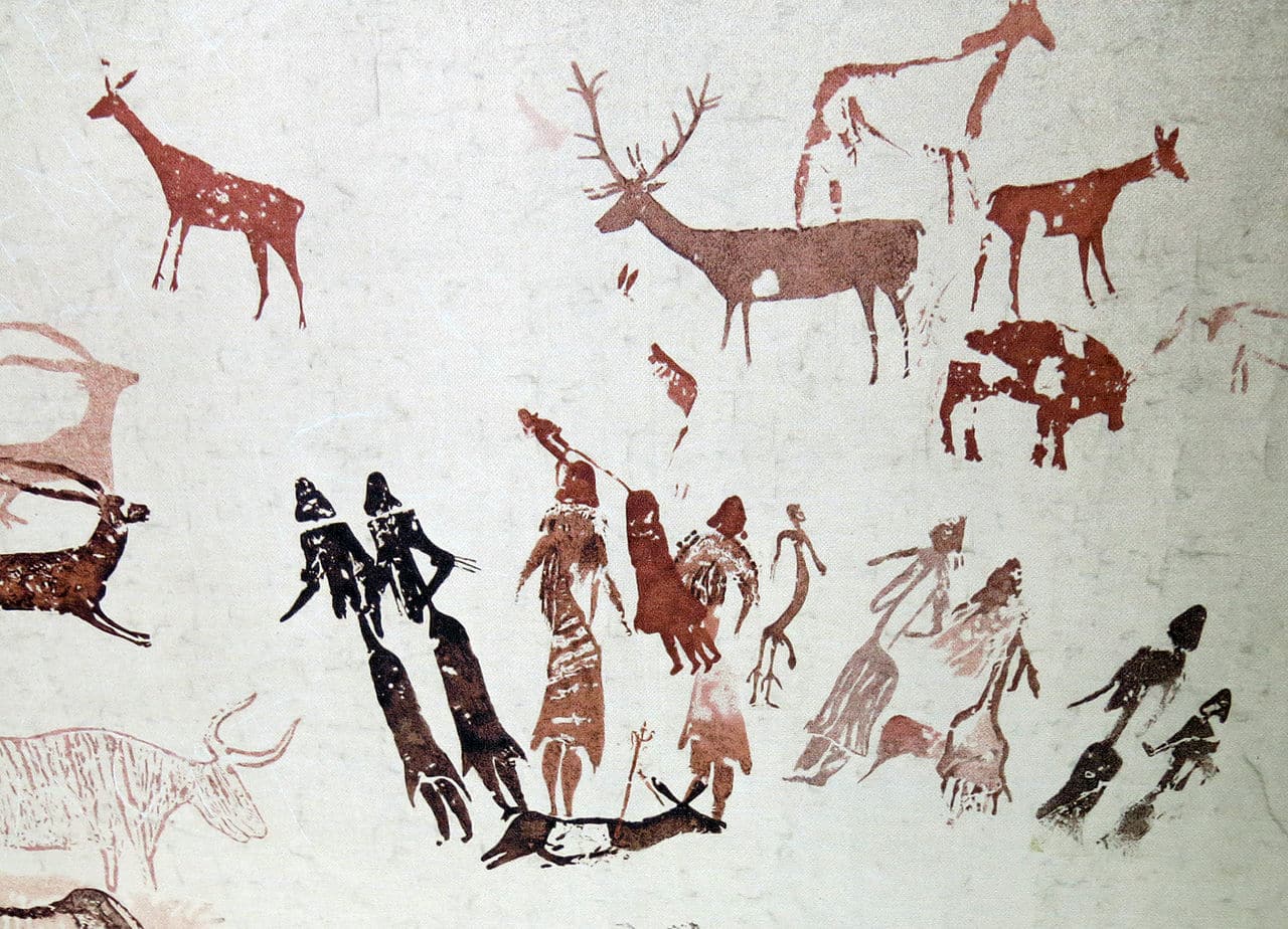Reproducción de las pinturas de Cogul, Lérida, España.
