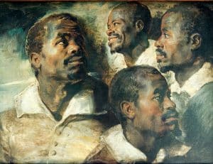 Cuadro que representa cabezas de negros firmado por Rubens, contemporáneo de Rembrandt. En 1610, Rubens montó un gran taller.