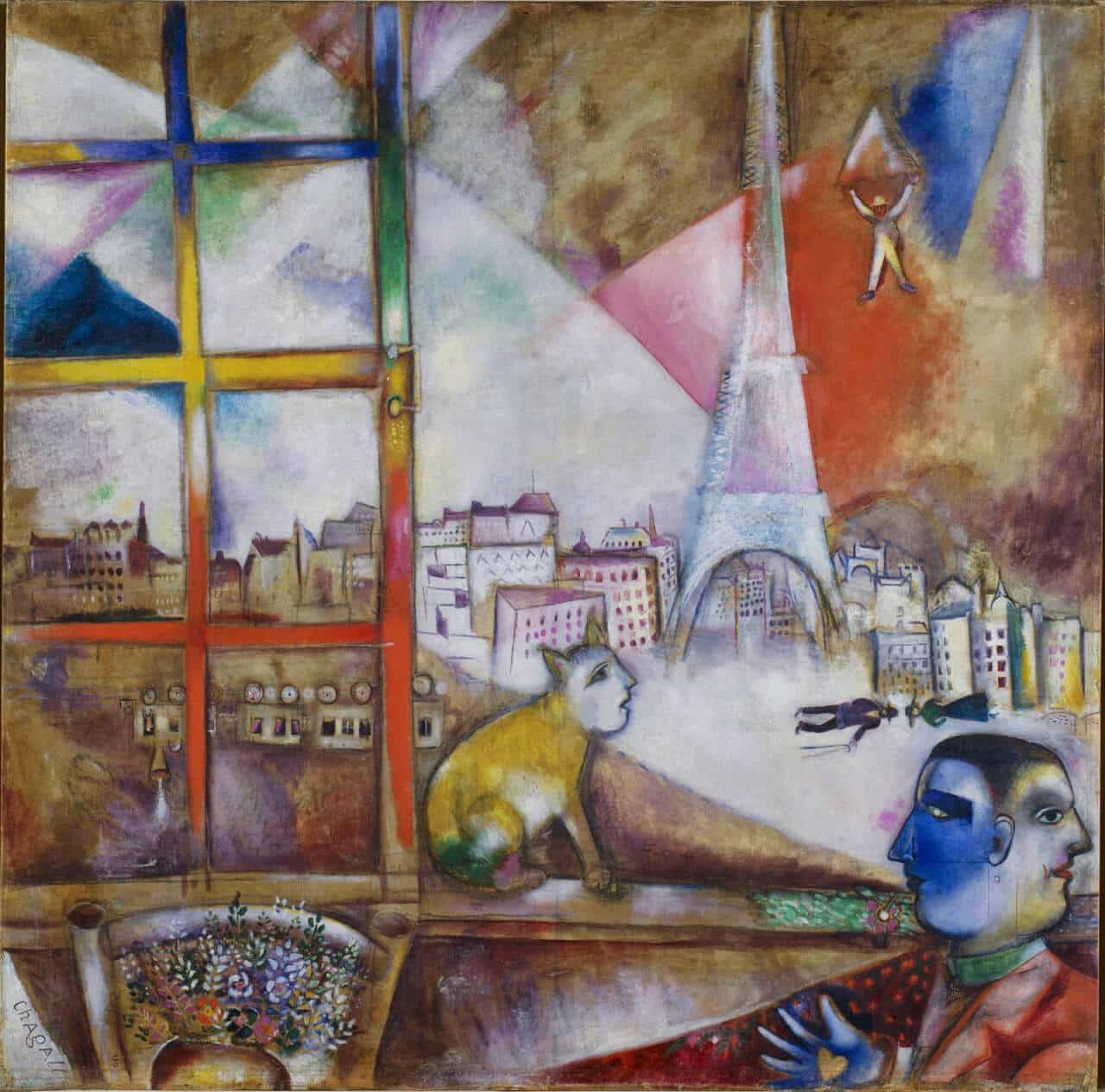 “París a través de la ventana”. Cuadro de Marc Chagall, pintor ruso que trabajó principalmente en París.