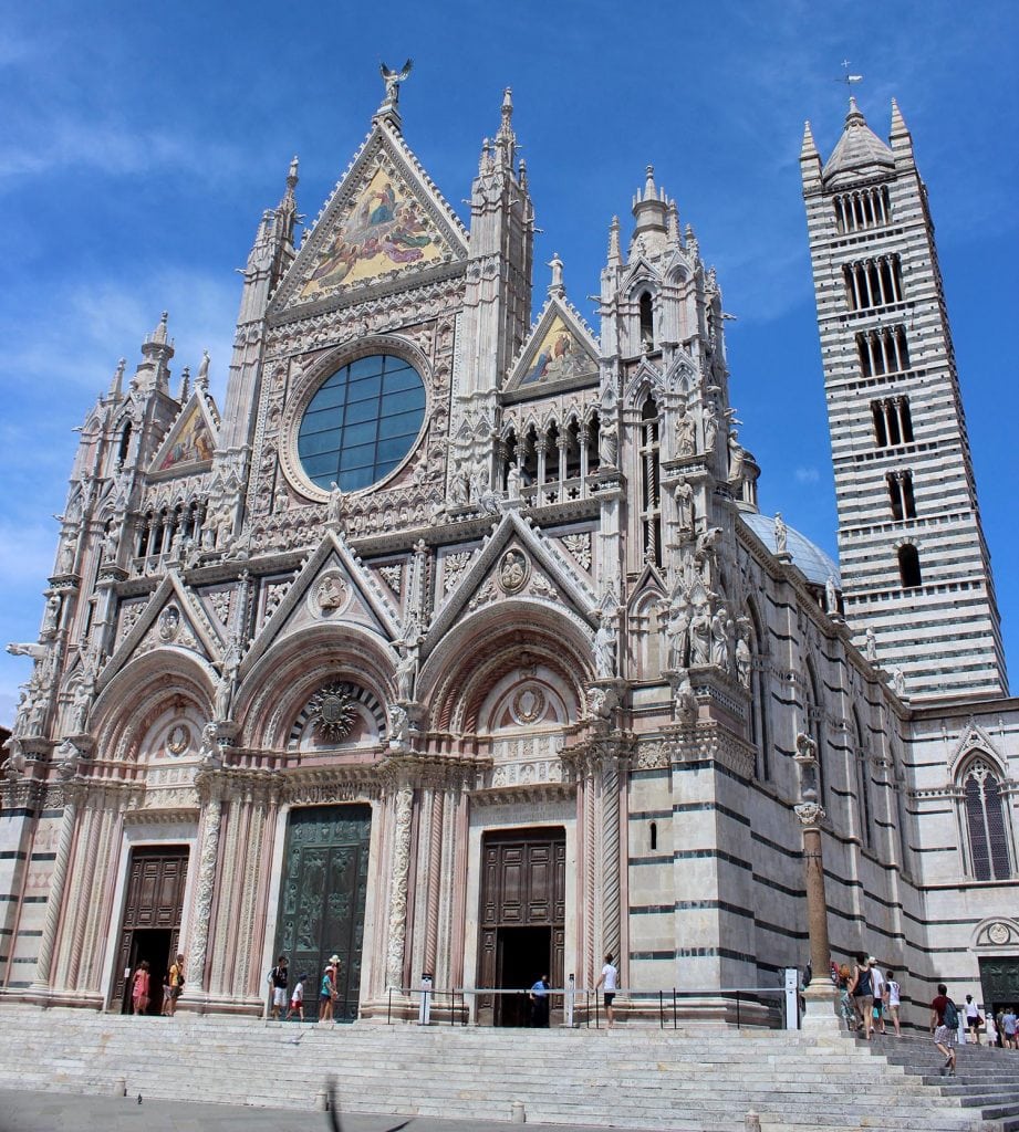 Otro trabajo fue el de la fachada de la catedral de Siena. Trabajó en ella a partir del último decenio del s. XIII, destaca la majestuosidad y ciertas distorsiones en las figuras, consecuencia de los acusados escorzos a los que las sometió, para que desde sus altos podium reclamaran la mirada del espectador. El papel de la escultura en la fachada de Siena es muy distinto, en ella no aflora ni en jambas de puertas ni en el tímpano. Giovani se dedicó a colocar imágenes de cuerpo entero en la zona baja de los pináculos que separan los arcos de las tres puertas y en los montantes exteriores, algunas en las líneas que marcan los gabletes de las puertas y un conjunto importante de figuras de medio cuerpo enmarcan el óculo central.