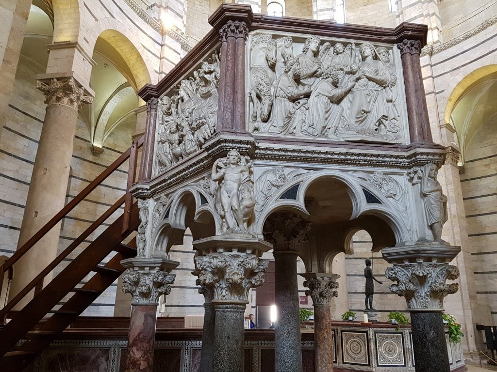En el Púlpito de la catedral de Siena (1265-1268) octogonal, el artista se revela más dueño de sus recursos, abandonando la puntual imitación romana. El relieve es más profundo.