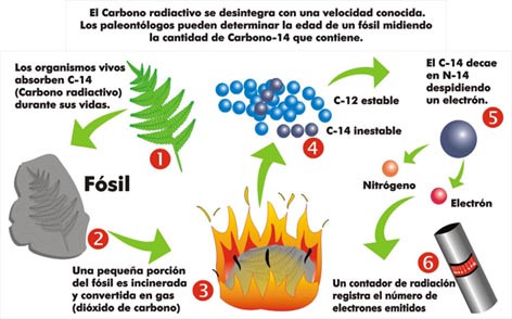 La Datación mediante carbono 14 es un método empleado para determinar la antigüedad de restos formados por materia orgánica.