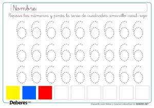 Ficha para repasar el numero SEIS (6) con puntitos y hacer series de colores