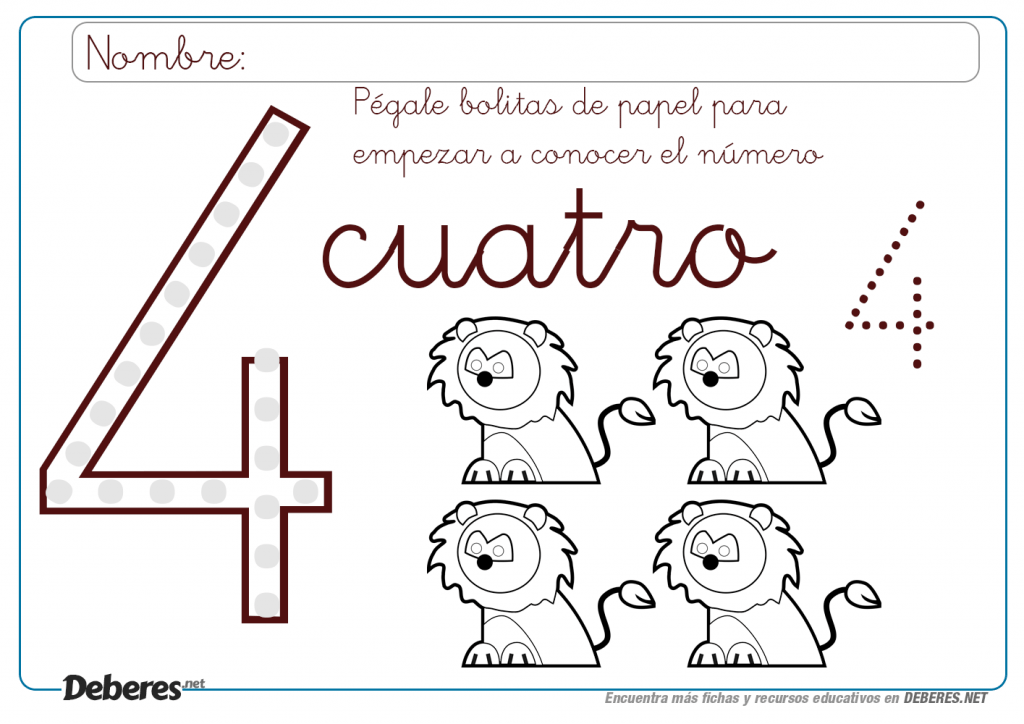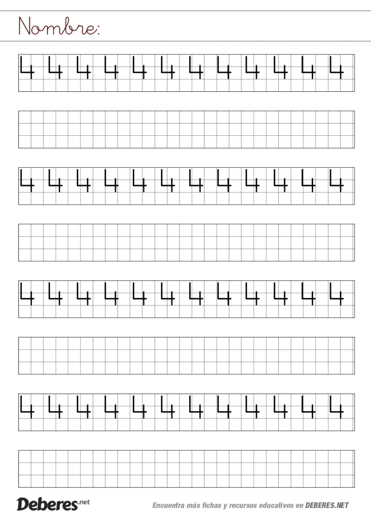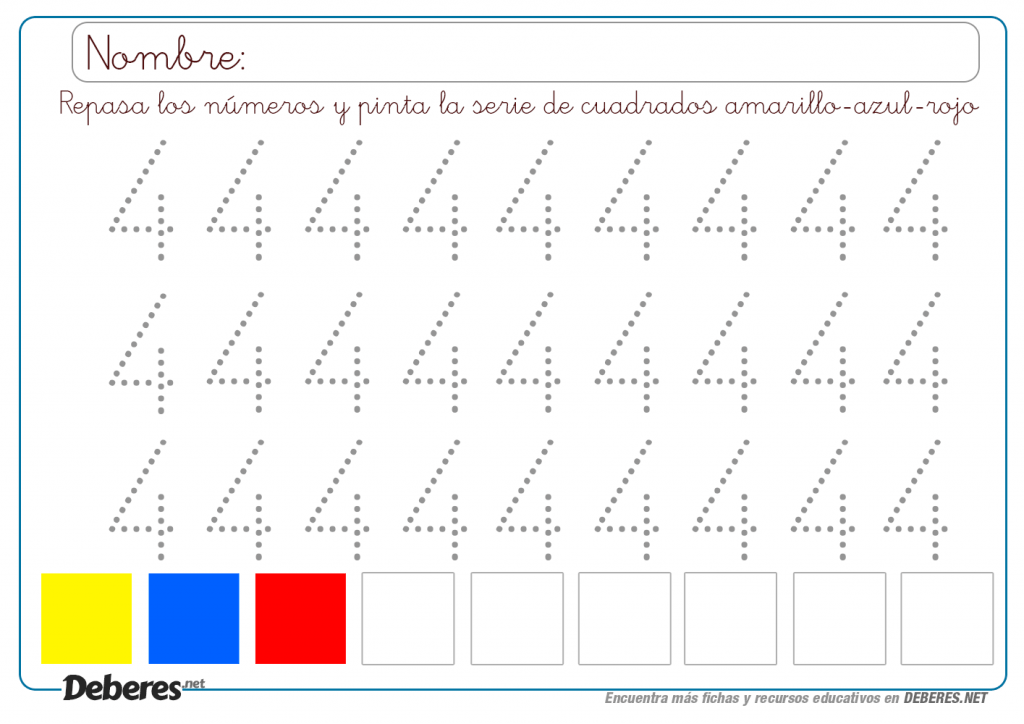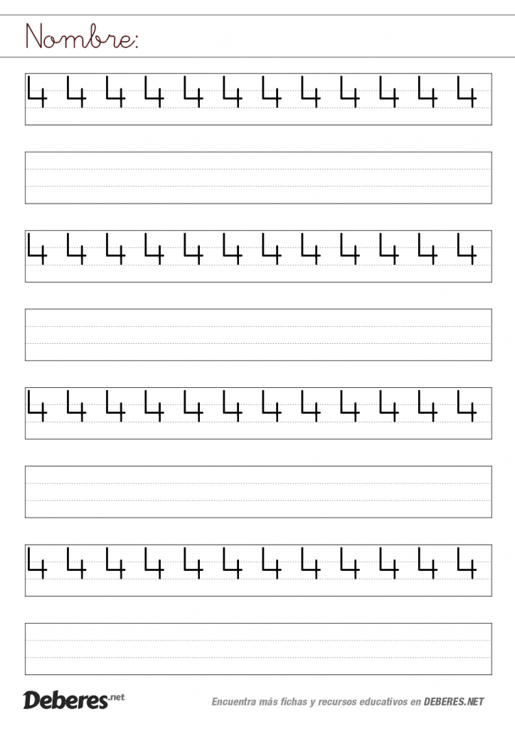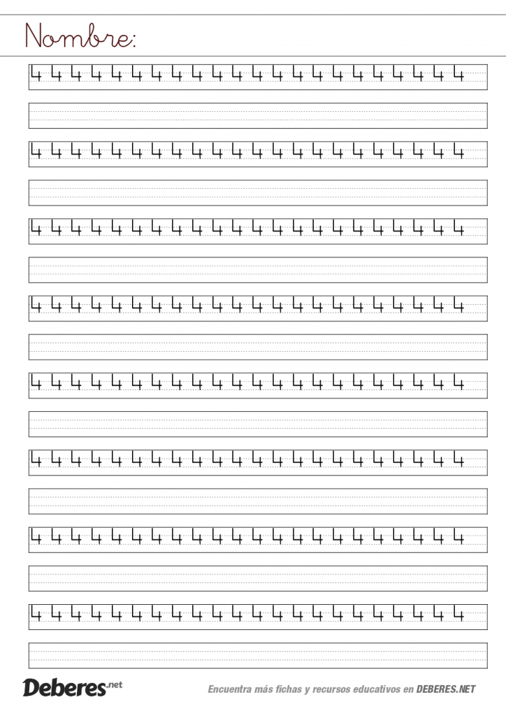 El número 4 suele ser el punto de inflexión en cuanto a concepto y grafomotricidad se refiere. Es decir, Los niños se han podido pasar un año haciendo los numeros 1, 2 y 3, y a partir de aquí aprender todos los que les quedan en 4 o 5 meses. Ya tienen que tener claro los conceptos, la sujeccion de lapiz, y la mano entrenada, por lo que todo va mucho más rápido.