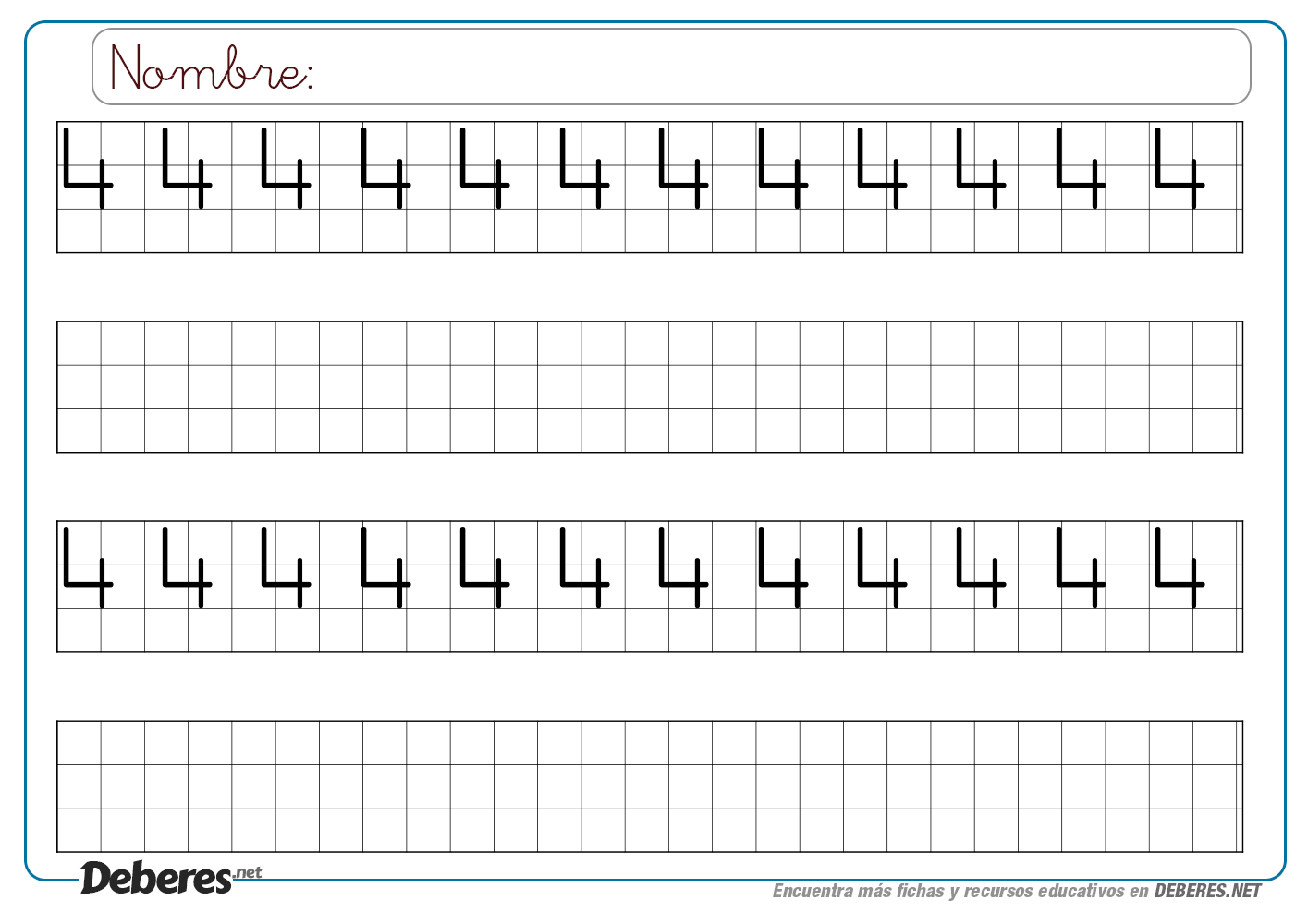 Ficha del numero CUATRO con cuadricula grande – FICHA DEL 4