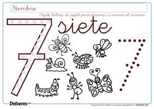 Ficha del numero 7 para COLOREAR y pegar bolitas