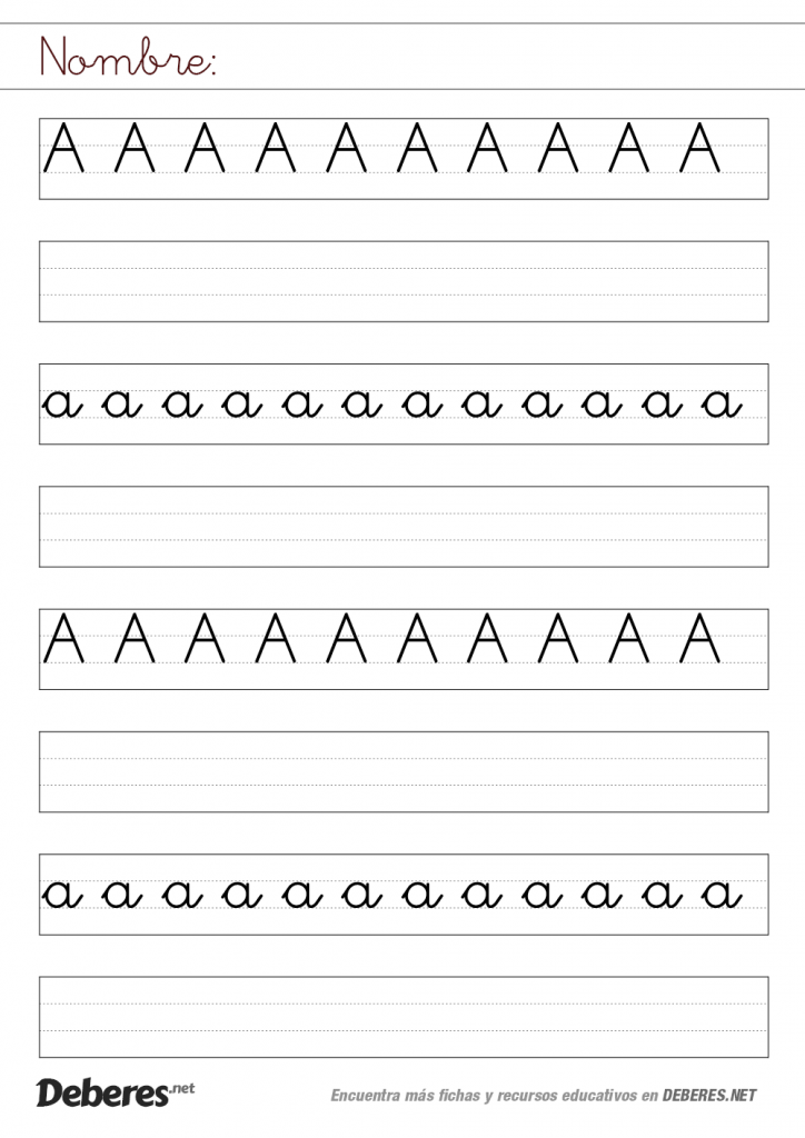 Ficha de la letra A con pauta MONTESSORI
