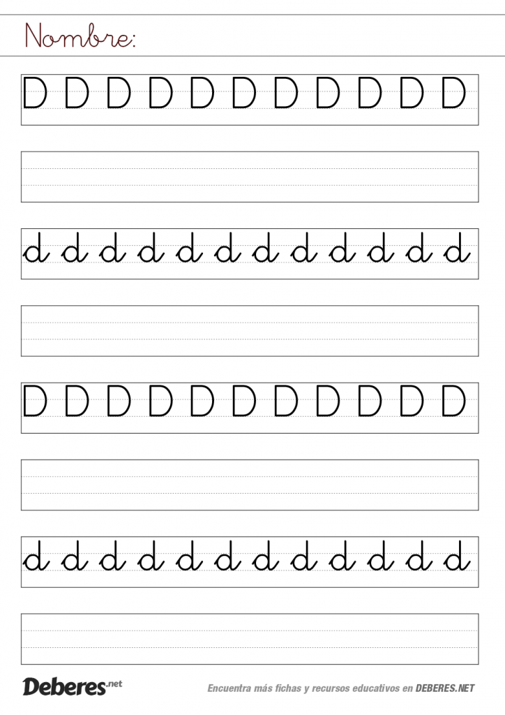 Ficha de la letra D con pauta MONTESSORI