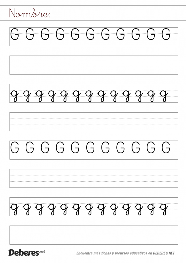 Ficha de la letra G con pauta MONTESSORI