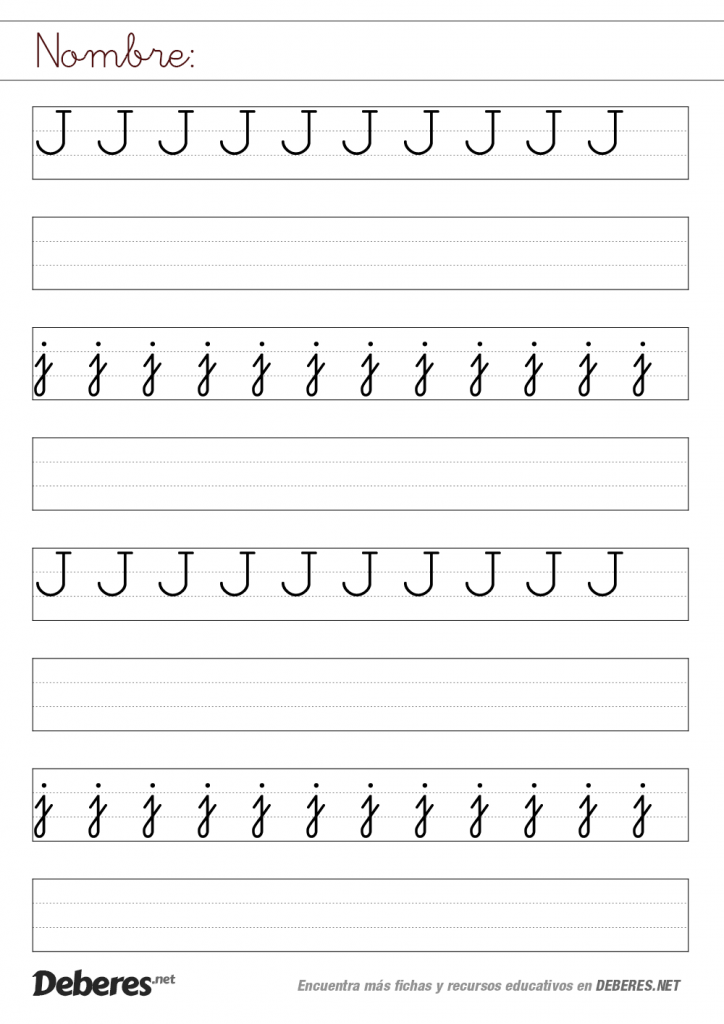 Ficha de la letra J con pauta MONTESSORI