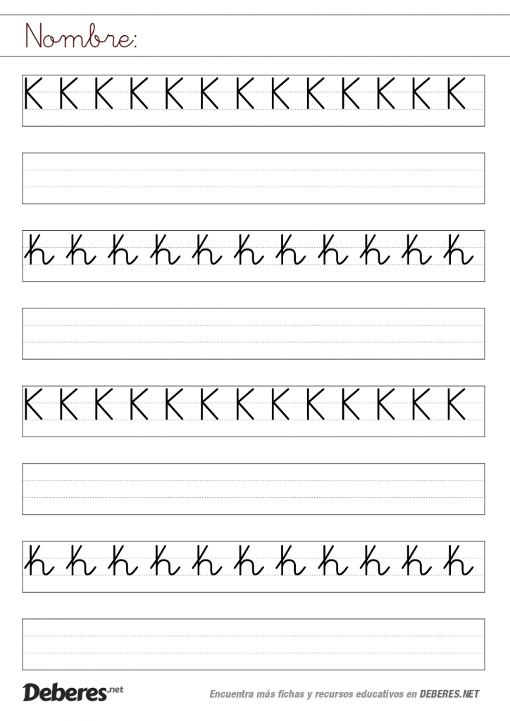 Ficha de la letra K con pauta MONTESSORI