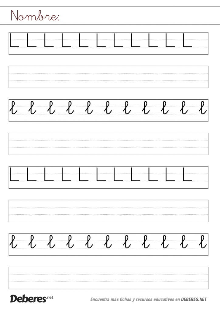 Ficha de la letra L con pauta MONTESSORI