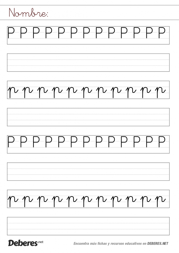 Ficha de la letra P con pauta MONTESSORI