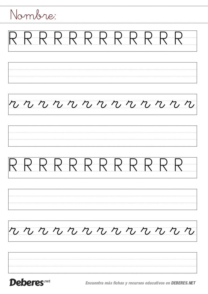 Ficha de la letra R con pauta MONTESSORI