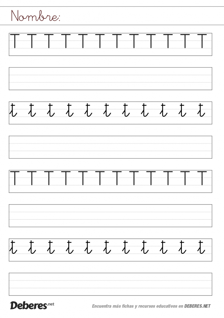 Ficha de la letra T con pauta MONTESSORI