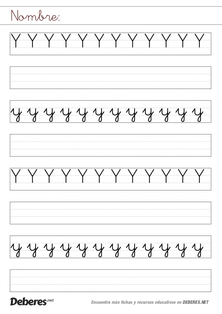 Ficha de la letra Y con pauta MONTESSORI