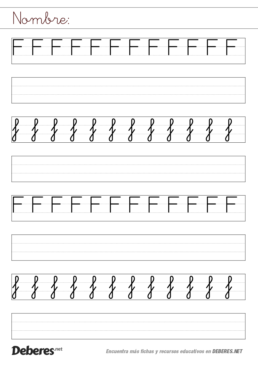 Ficha de la letra F con pauta MONTESSORI