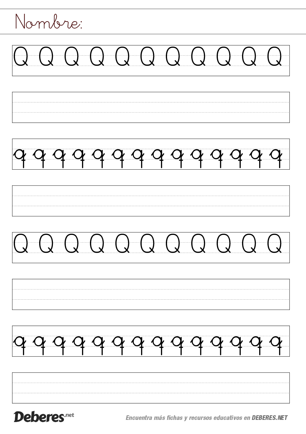 Ficha de la letra Q con pauta MONTESSORI – Mayúsculas y minúsculas