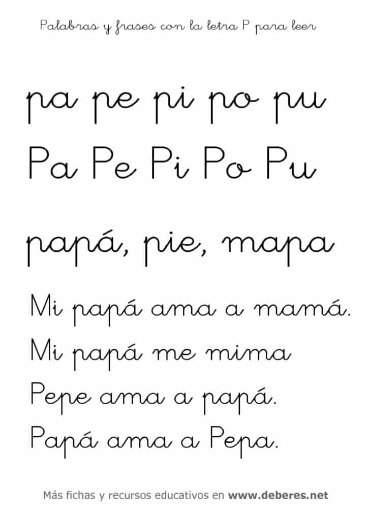 La letra P: Fichas de la letra P y p, palabras y frases con la letra P.