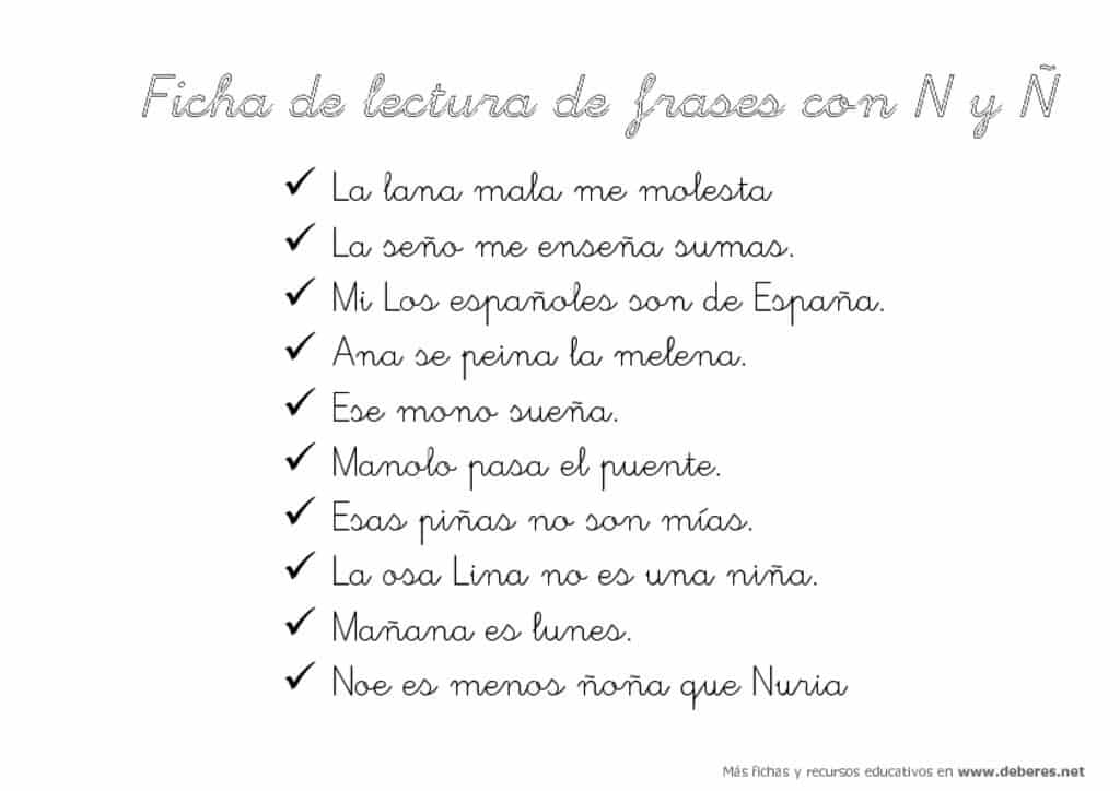 thumbnail of Ficha de lectura de frases con N y Ñ