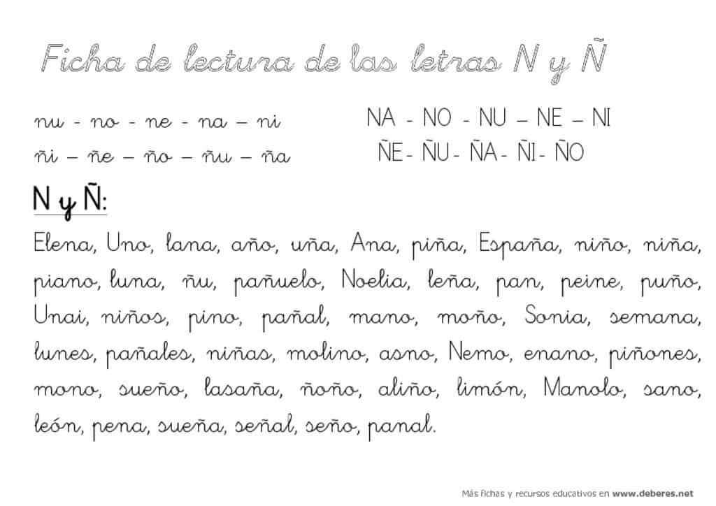 thumbnail of Ficha de lectura de las letras N y Ñ