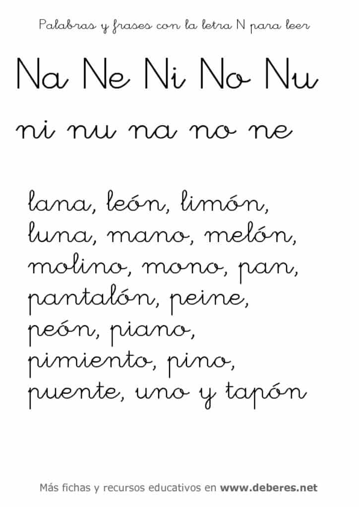 Deberes escolares » Educación infantil » Fichas de la letra N