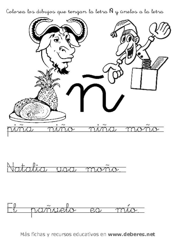 Ficha de fonemas basicos de la letra Ñ con linea simple
