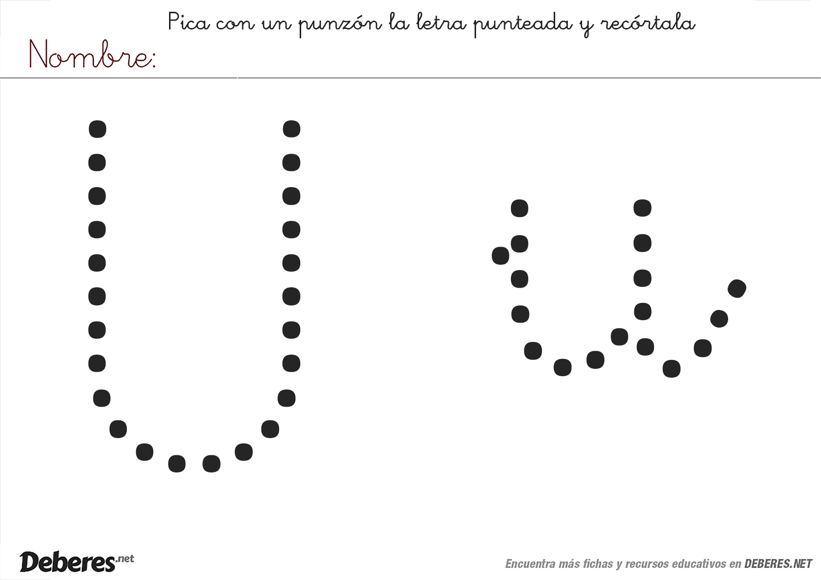 Ficha para picar y recortar la letra U