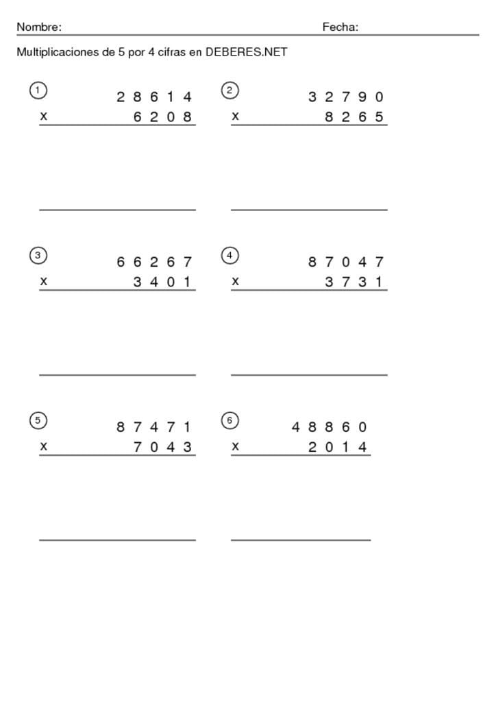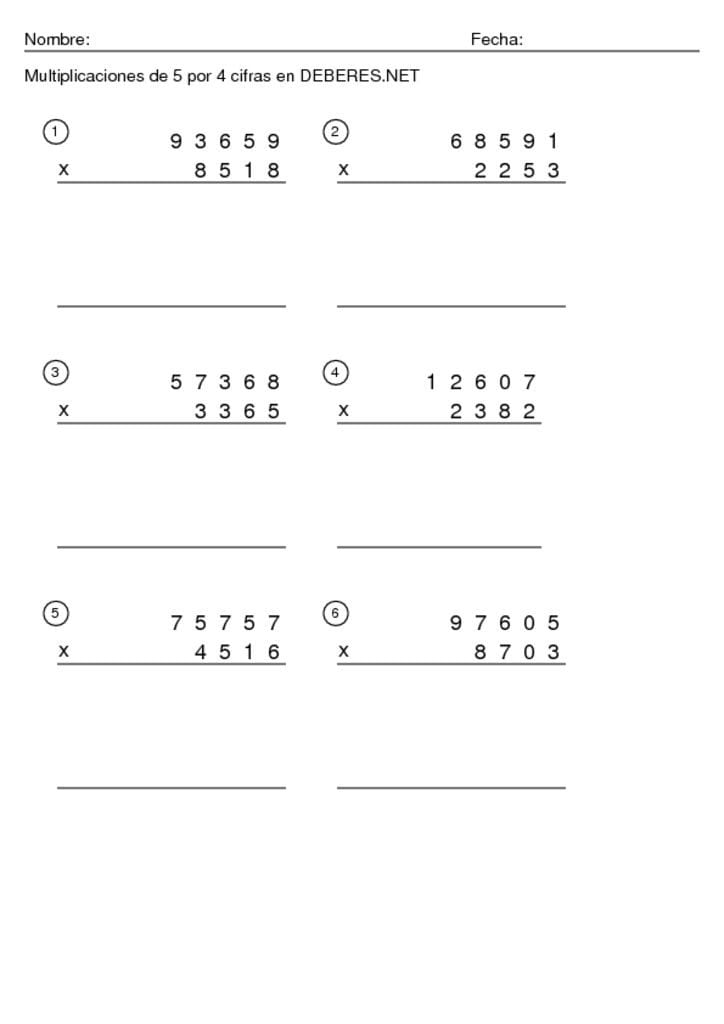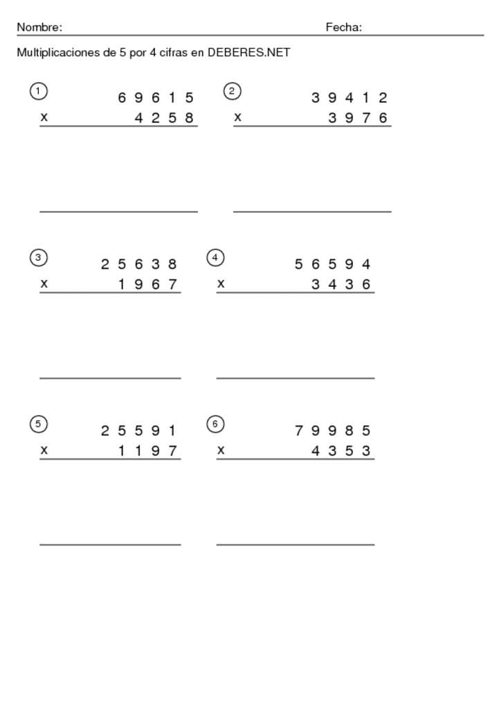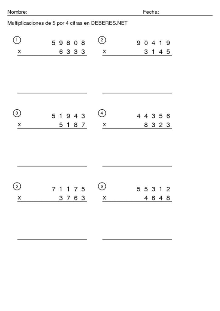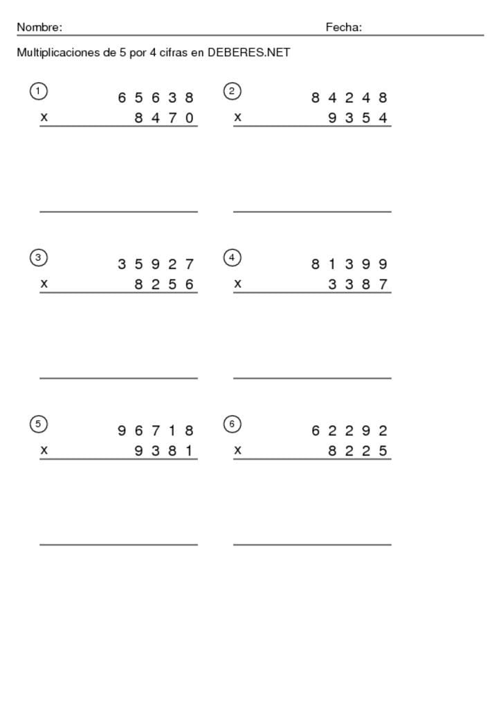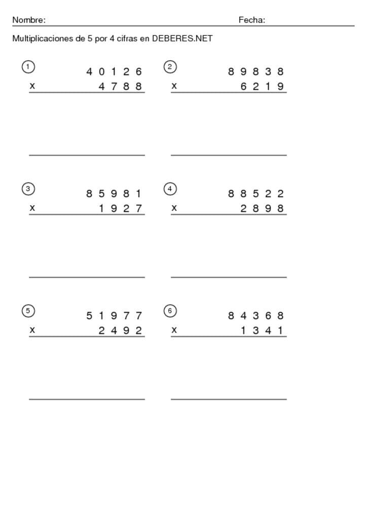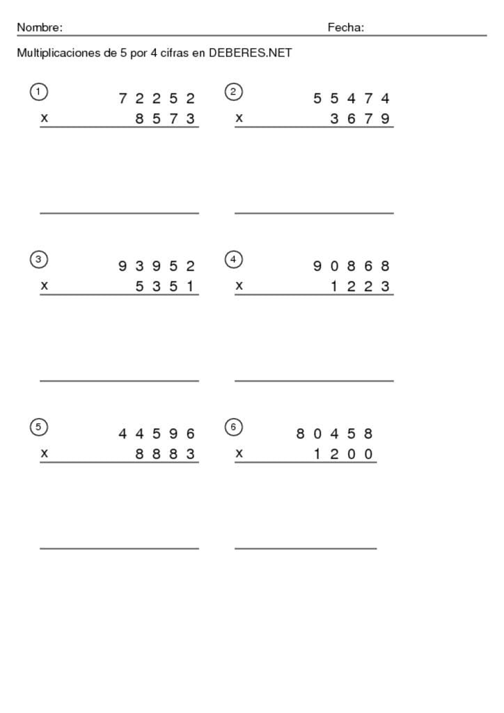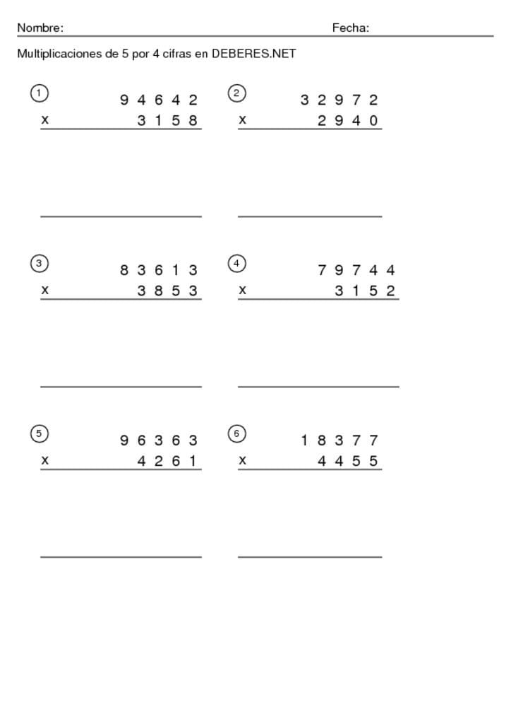 Descargate TODAS LAS FICHAS con más de 110 multiplicaciones de 5 cifras por 4 cifras DESBLOQUEANDOLAS DESDE ABAJO.