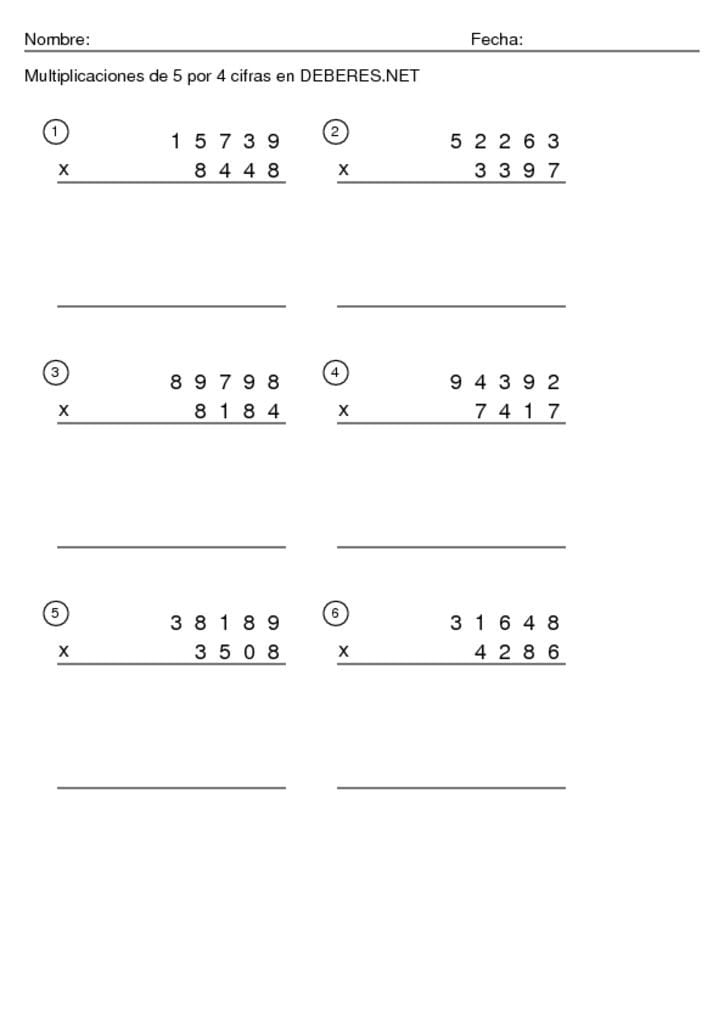 Fichas – Multiplicaciones de 5 cifras por 4 cifras