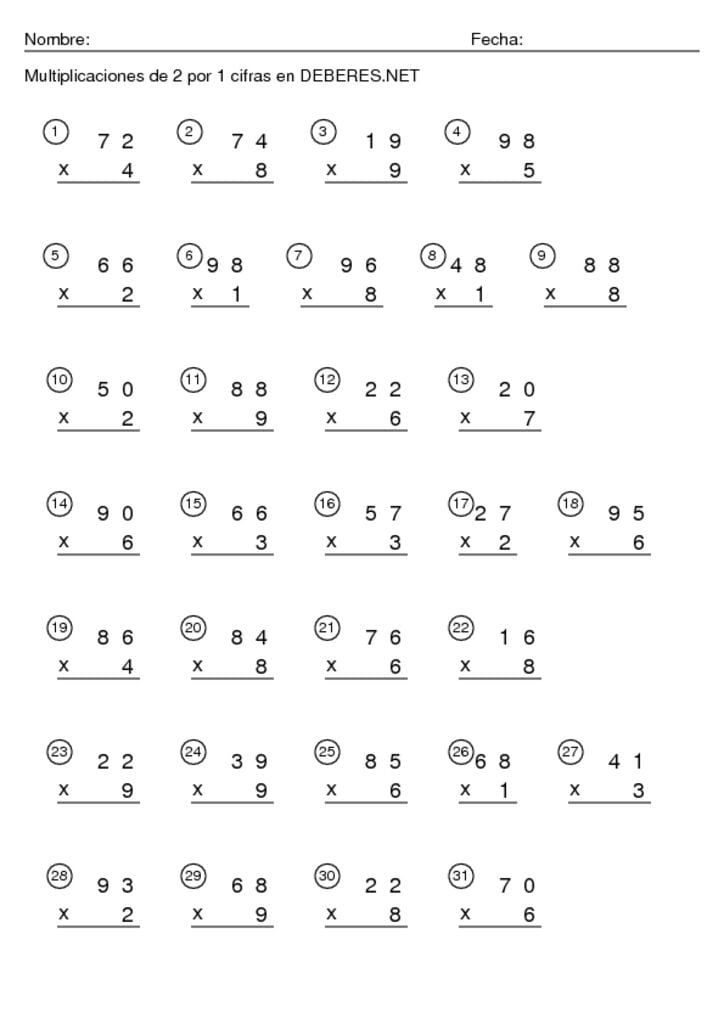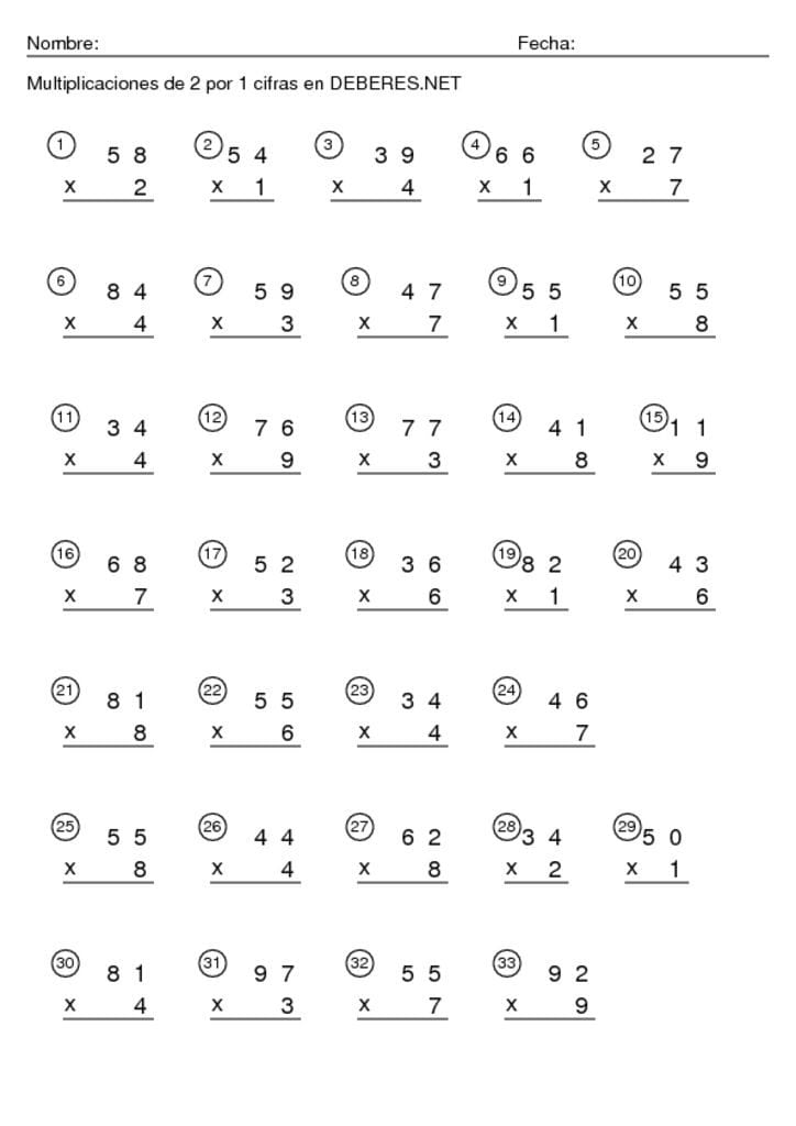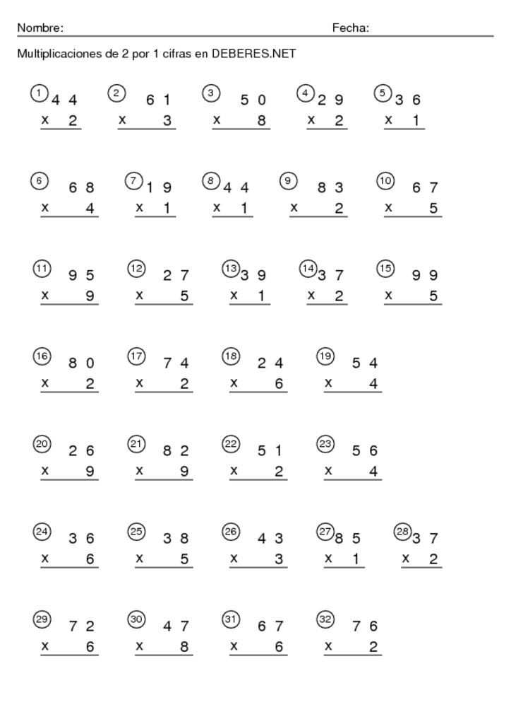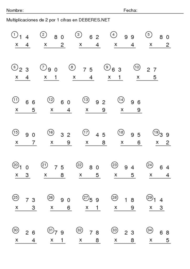Multiplicaciones de distintas dificultades (desde muy fáciles a mas complicadas) ideales para niños y niñas de segundo y tercero de primaria.