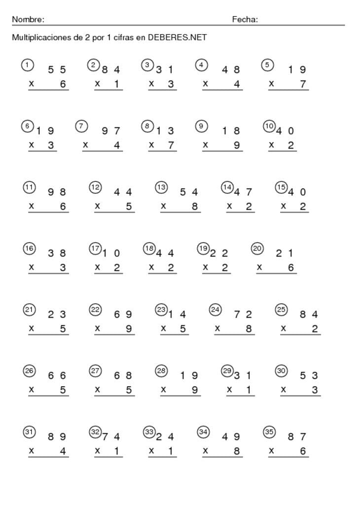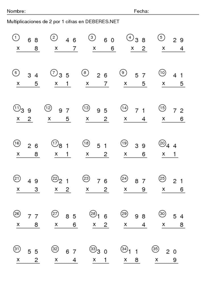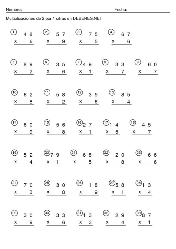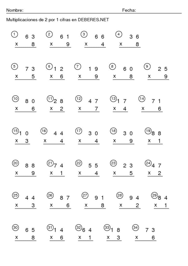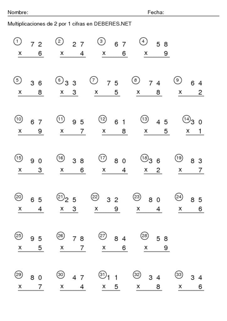 Multiplicaciones de distintas dificultades (desde muy fáciles a mas complicadas) ideales para niños y niñas de segundo y tercero de primaria.