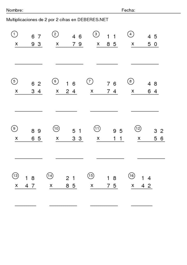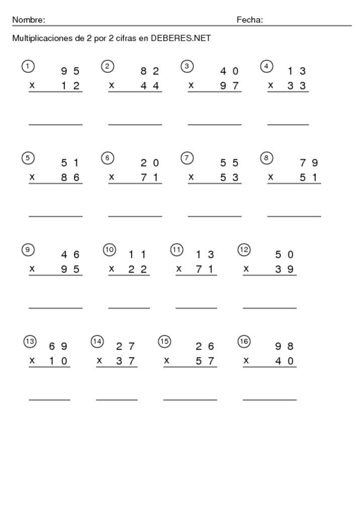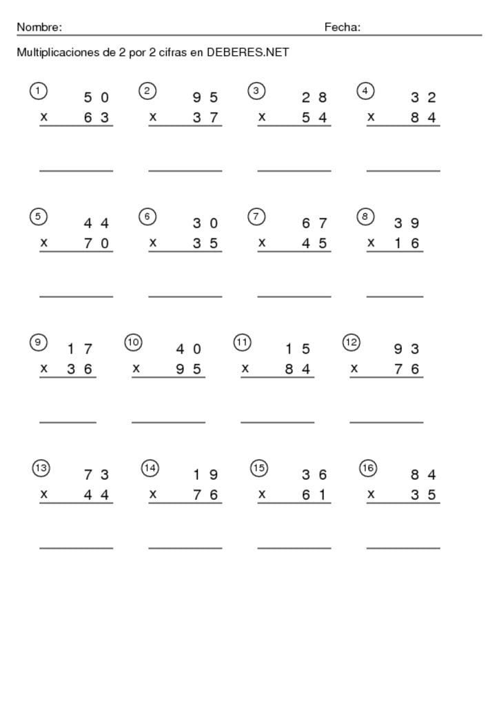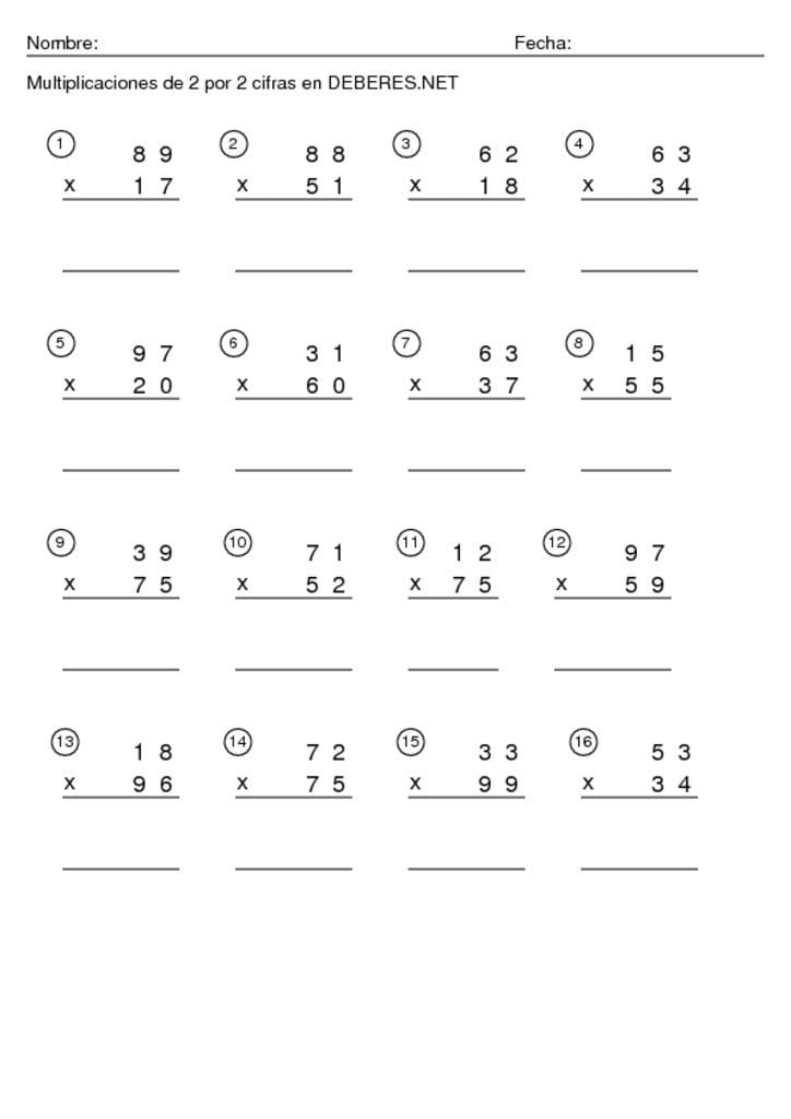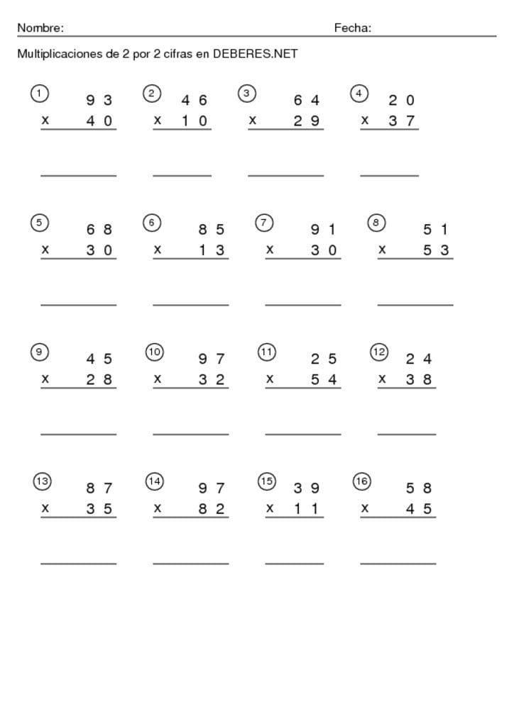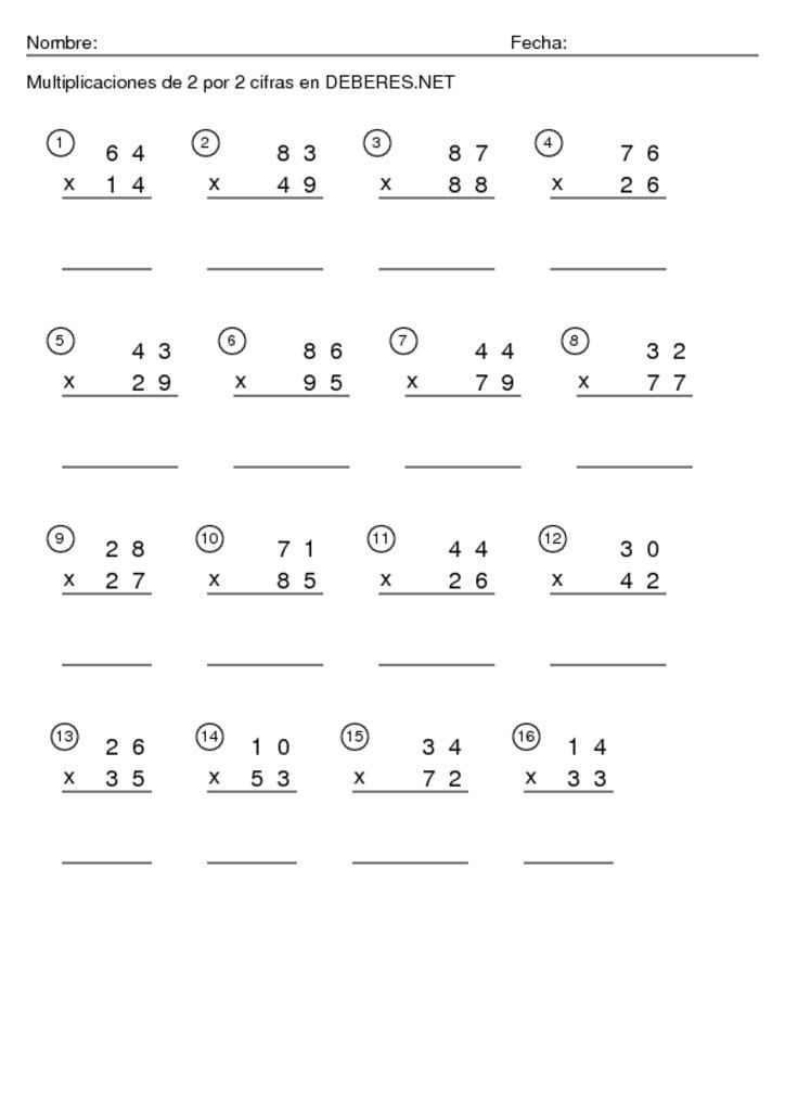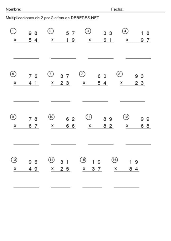 Fichas Multiplicaciones de 2 cifras por 2 cifras