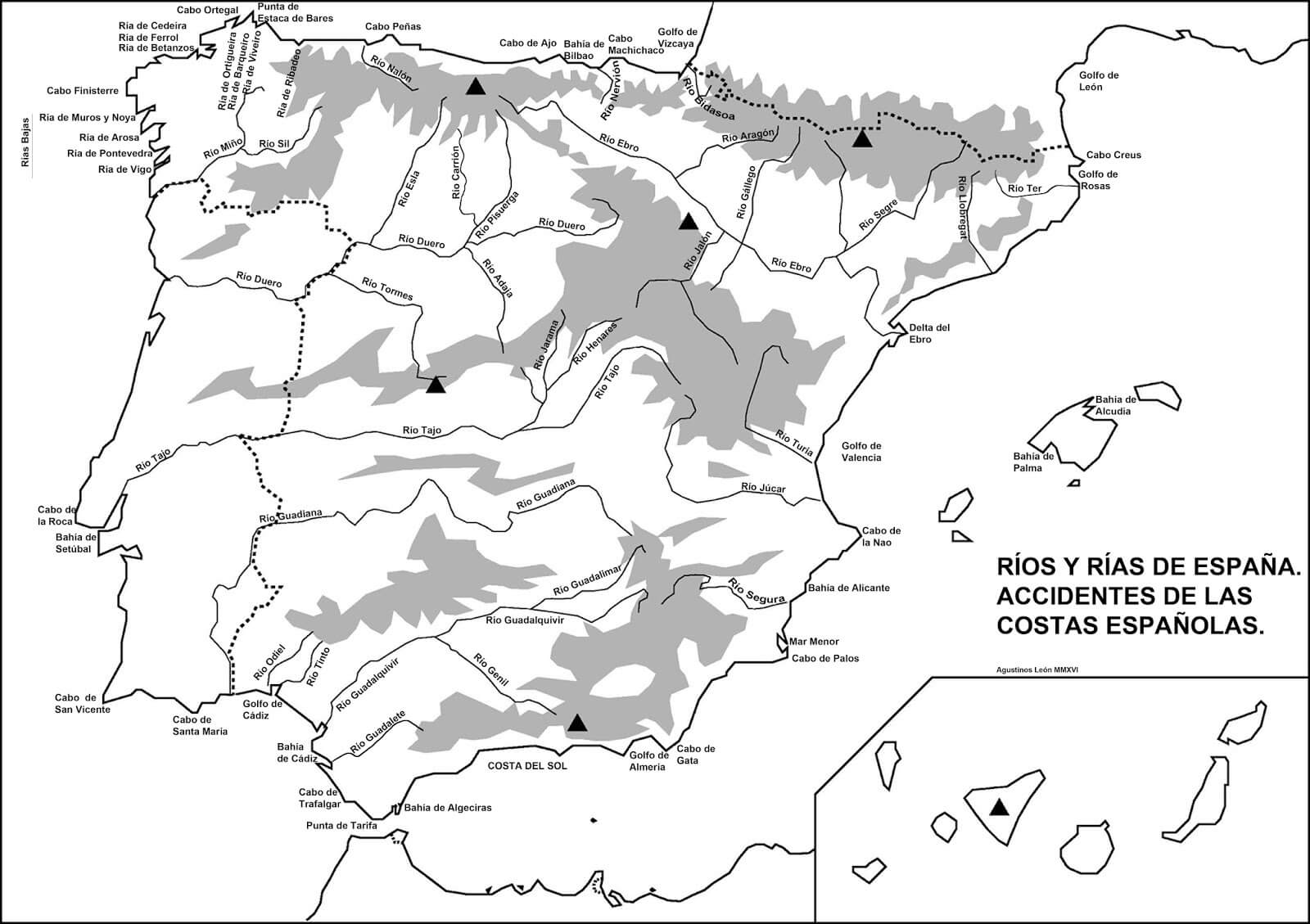 Mapas rios afluentes y rias de España con nombre