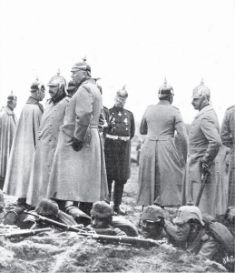 Su reinado se caracterizó por su falta de aptitud para gobernar. Aquí se le ve, rodeado de oficiales, con ocasión de la visita delarchiduque Francisco Fernando de Austria, que fue asesinado, en 1914, durante el transcuso de una visita a Sarajevo, lo que provocó una violenta reacción de la que resultó la Primera Guerra Mundial.