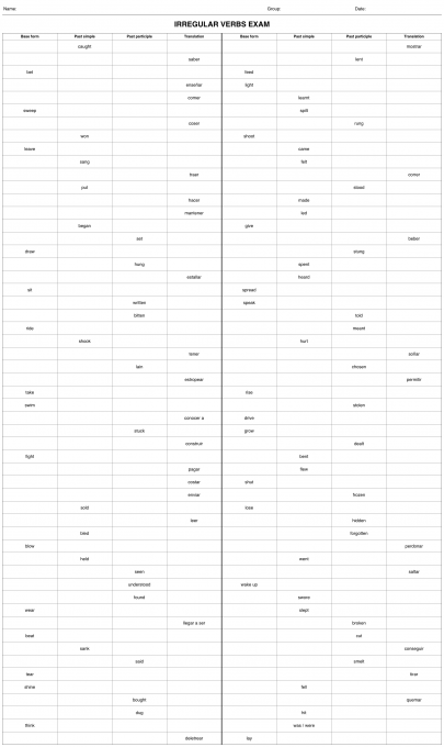 Verbos irregulares en ingles – Ejercicios de autoevaluacion 5