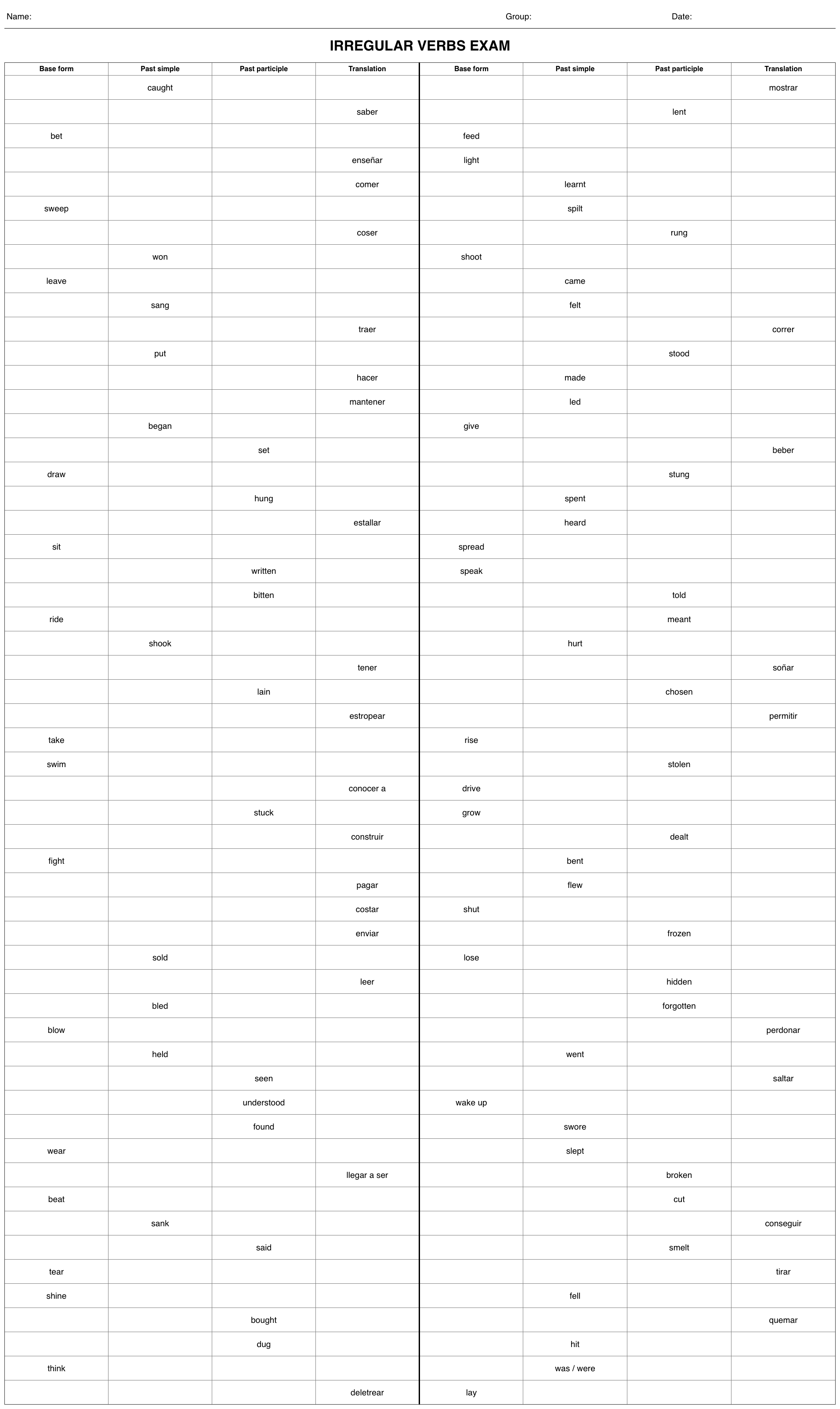 Verbos irregulares en ingles - Ejercicios de autoevaluacion 5