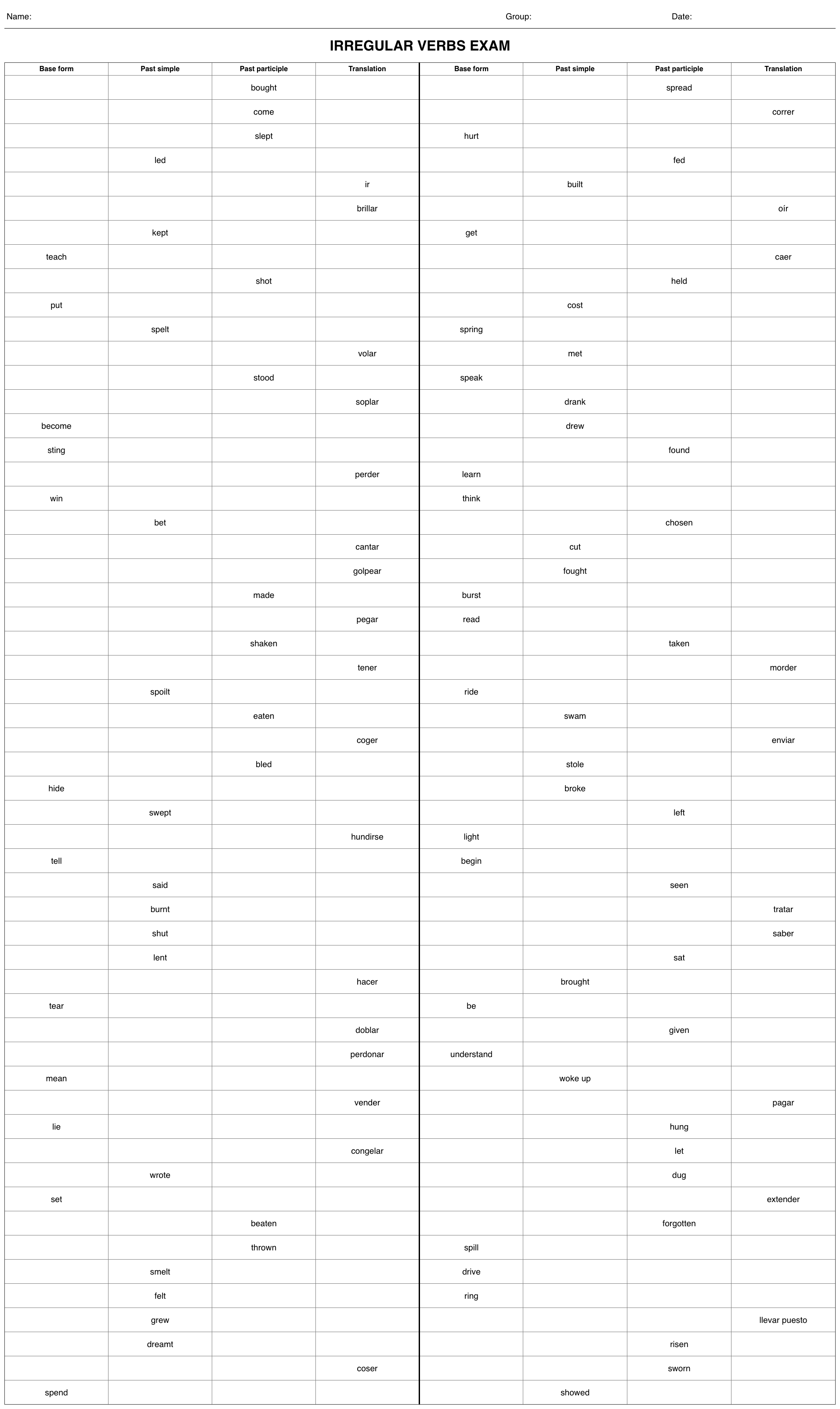 Verbos irregulares en ingles - Ejercicios de autoevaluacion 7