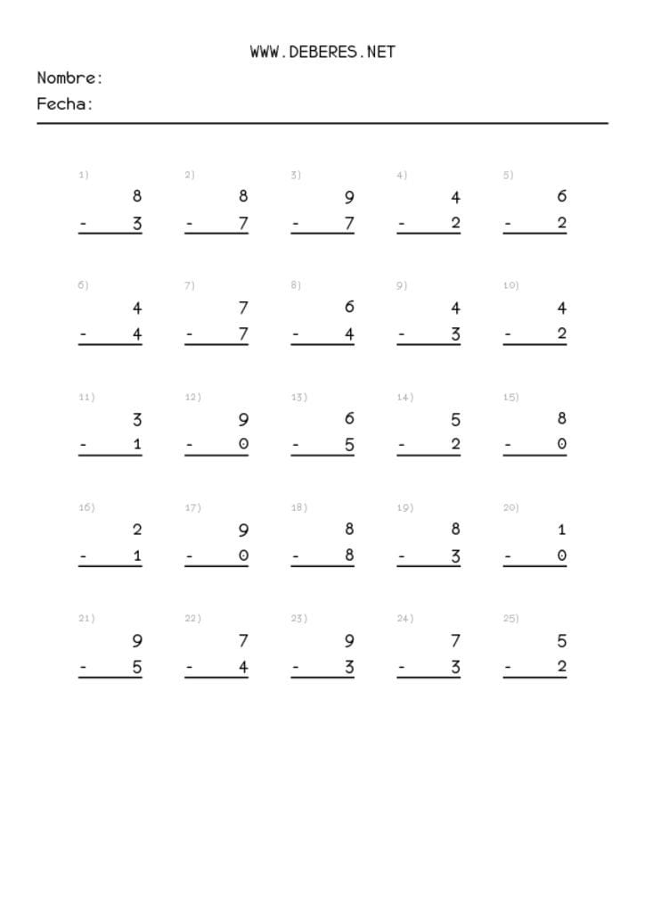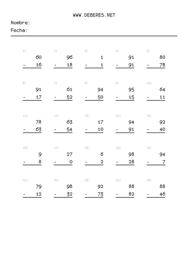 Restas llevando desde 2 números hasta cinco numero además de más de 100 hojas de restas con las soluciones incluidas para facilitar la corrección a los padres o incluso para la autoevaluación de los niños.