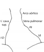 La base está situada en la región posterior y superior y corres- ponde fundamentalmente a la aurícula izquierda. A este nivel se sitúan los vasos que entran (venas) o salen (arterias) del corazón y el seno coronario, que recoge la mayor parte del drenaje venoso del corazón.